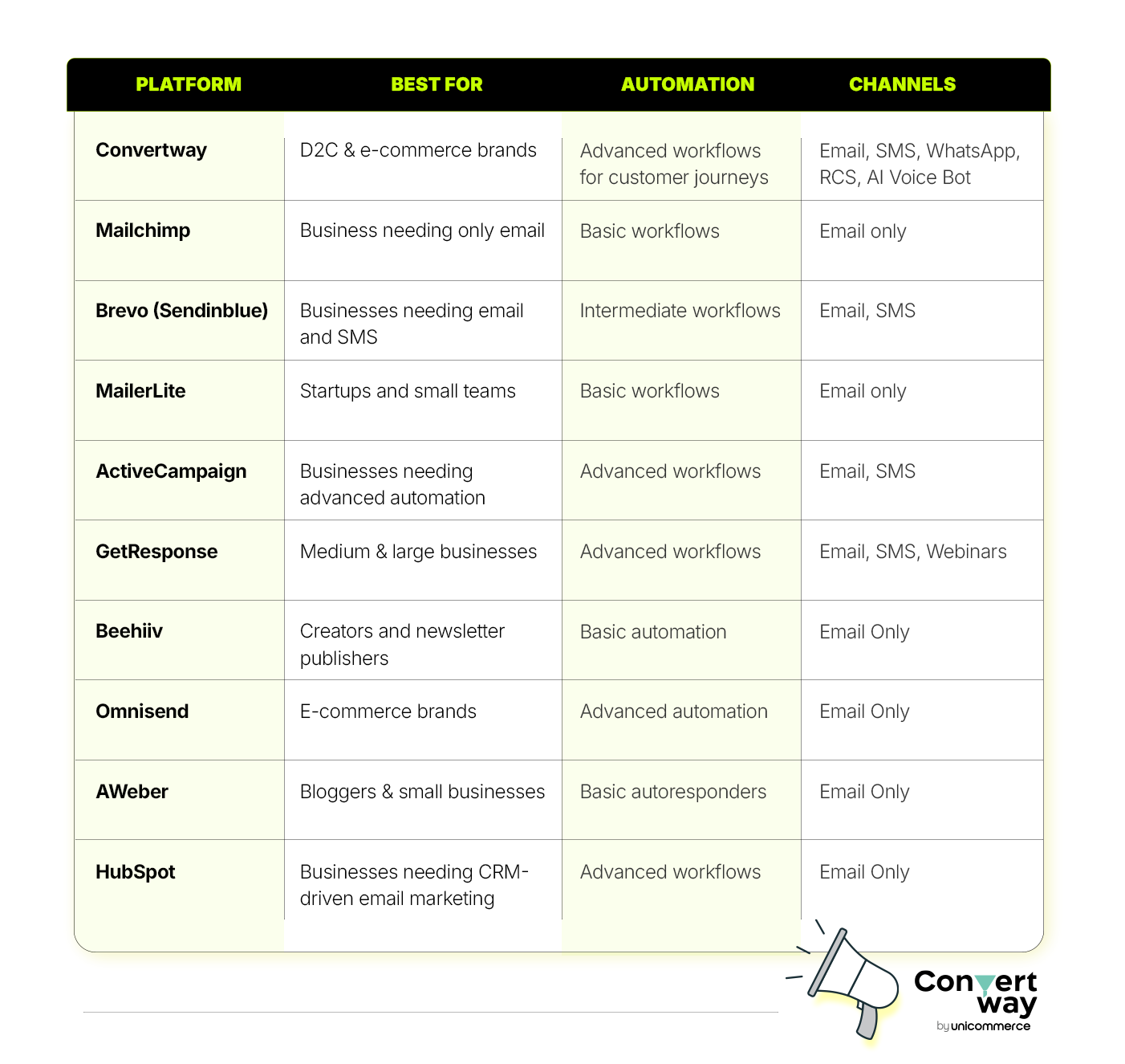 Now that we’ve explored some of the most popular email marketing tools, the next step is to compare them. Since each platform offers different features, automation capabilities, and pricing models, it can be difficult to identify the right one quickly.