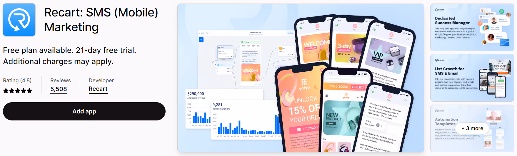 SMS Bump is an all-in-one SMS marketing app which is one of the most used Shopify apps by merchants. It helps you to drive more revenue and sales with its SMS and Email Marketing automations.