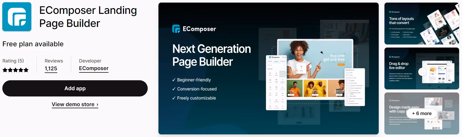 Also, EComposer offers you some great features even in its free plan. It offers 20+ page layouts to build a product page, blog page, collection page, and other standard pages in its free plan