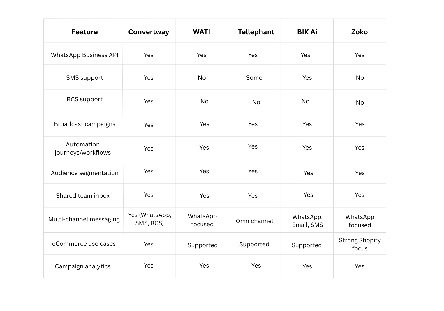 The best DoubleTick alternative depends on business needs. Platforms like Convertway focus on automated, omnichannel marketing, while tools like WATI and Zoko are more WhatsApp-centric. Businesses looking for scalability and lifecycle campaigns often prefer platforms with automation and analytics.