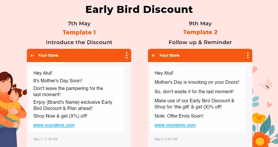 Scroll down and check unique and profitable SMS marketing ideas for Mother's Day!