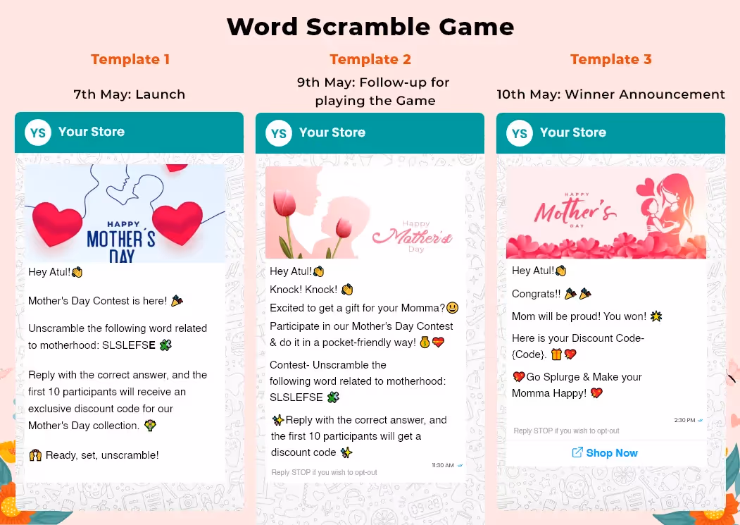 The first Mother's Day marketing campaign idea will make you popular. Organize a scramble game and entice with them your fancy offers! This will increase your brand image as well as sales.