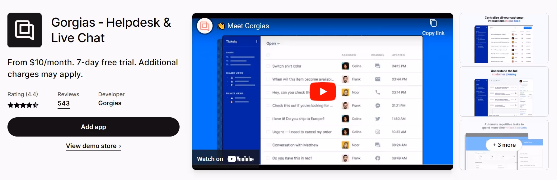 Gorgias is a great customer service platform for Shopify brands that helps you to convert more shoppers and retain them longer. The App is mainly focused on customer retention by managing Shopify brand’s all customer support all-at-one place.