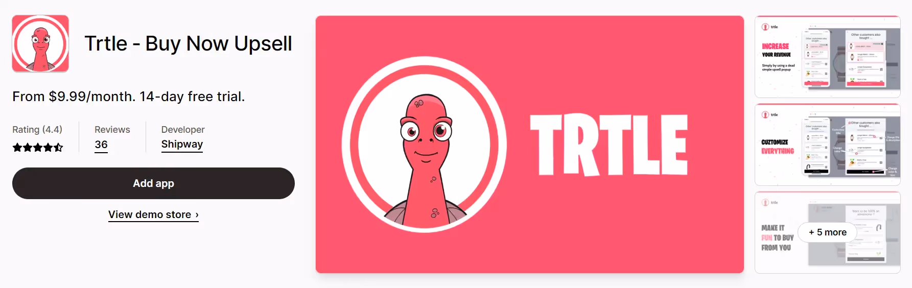 Trtle is an upsell marketing platform that helps you to create a customizable upsell page that will pop up from the moment the person clicks on ‘add to cart’. The upsell popup shows a list of recommended products with which customers can upgrade their preferred product for more benefits.