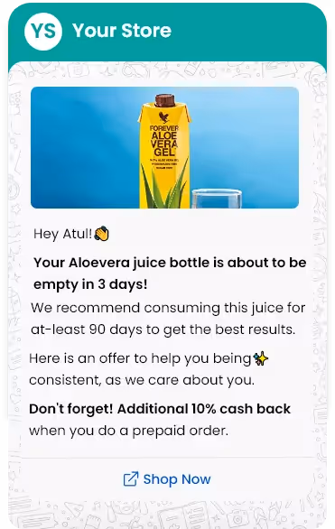 Make your customer habituated to your product. Never let them run out of their fav. product.