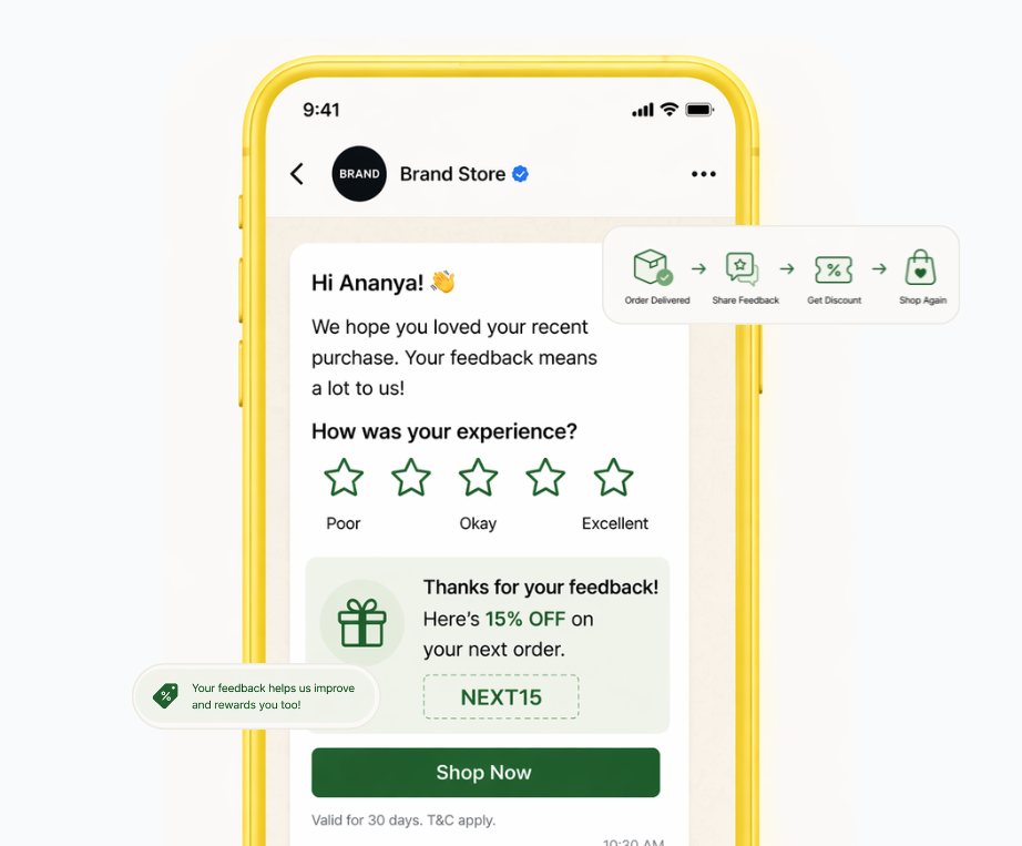 Send post-delivery feedback messages that include a discount for the customer’s next order, so feedback collection also drives repeat purchases.